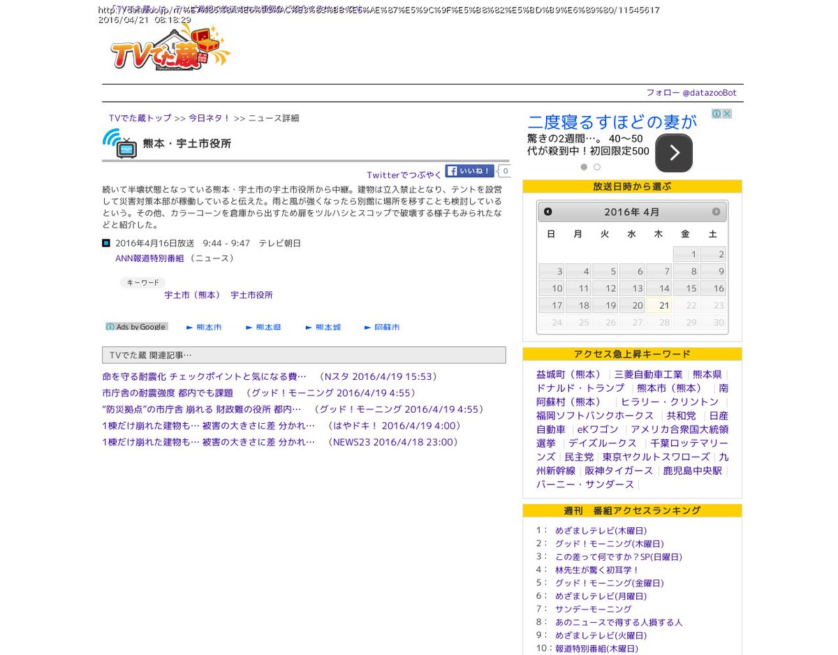 Datazoo Jp Tvでた蔵 過去から最新のテレビ番組表と放送内容をご紹介 Datazoo